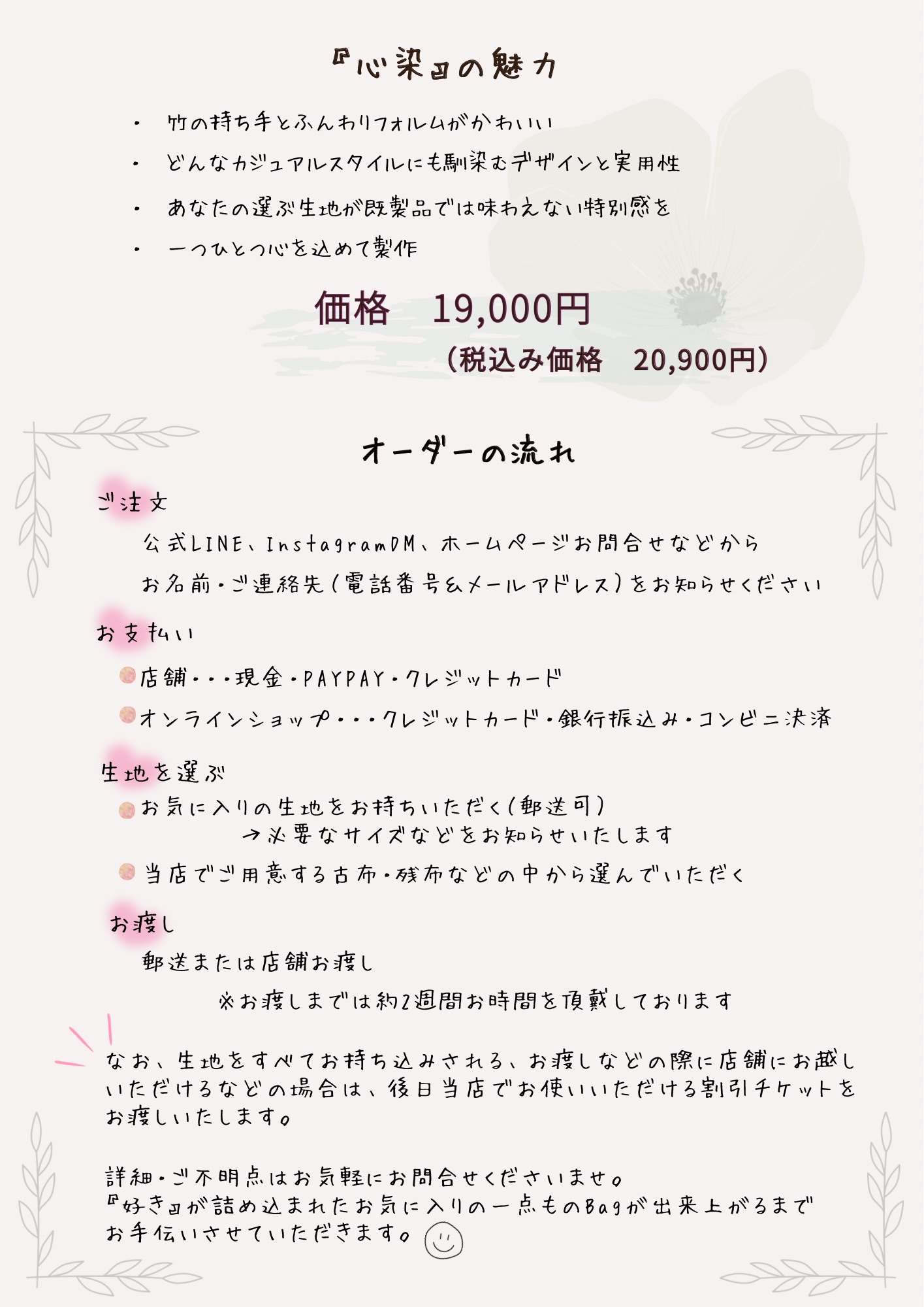 < セミオーダーバック『心染』6月29日(日)受付開始!