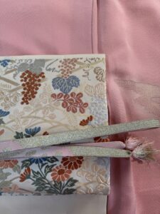 お祝い事には「喜びが重なるように」と二重太鼓で結ぶ袋帯を合わせるのが王道のスタイルです。